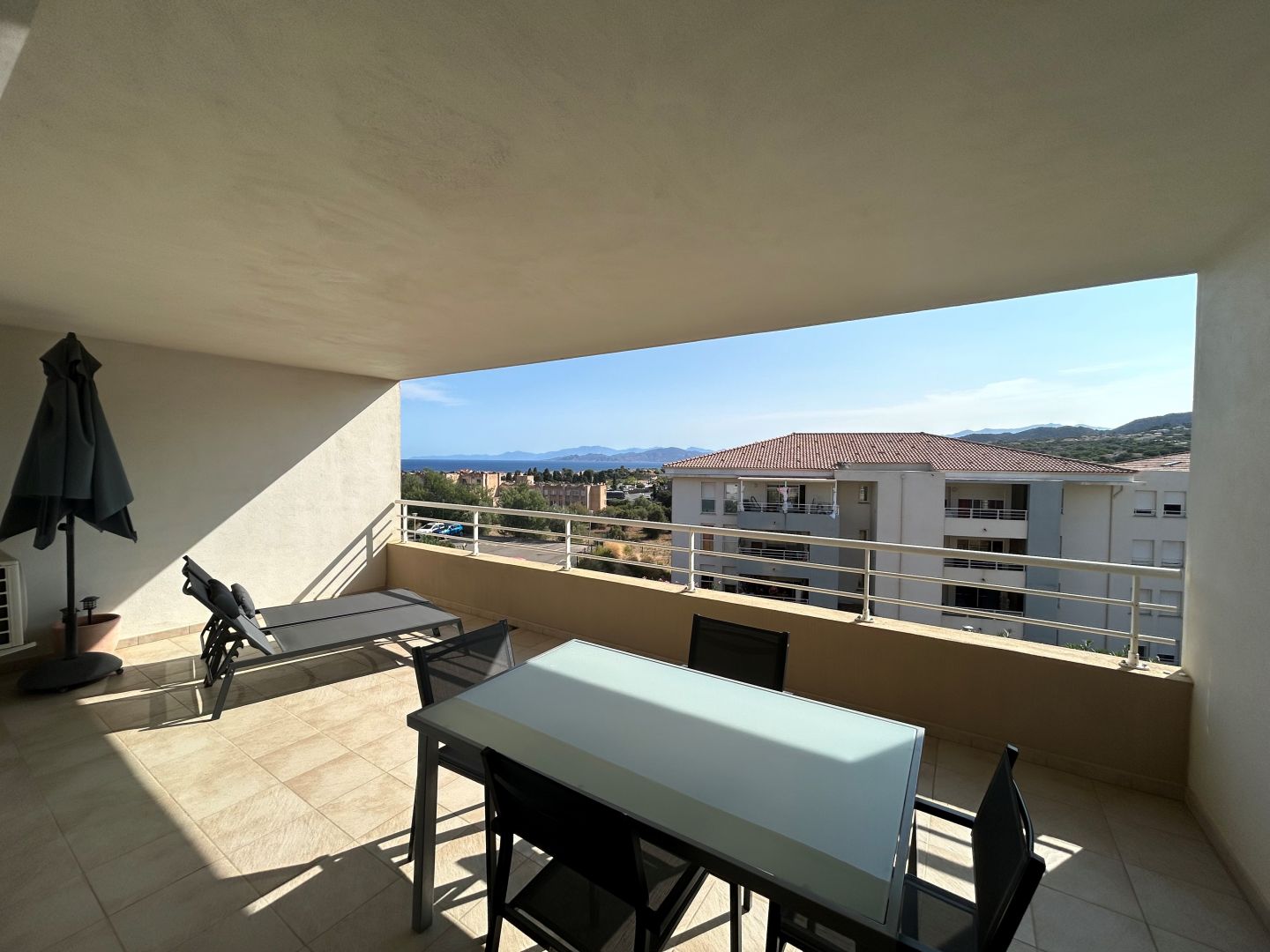 Appartement idéal pour vos vacances, grande terrasse ombragée avec vue sur la mer.