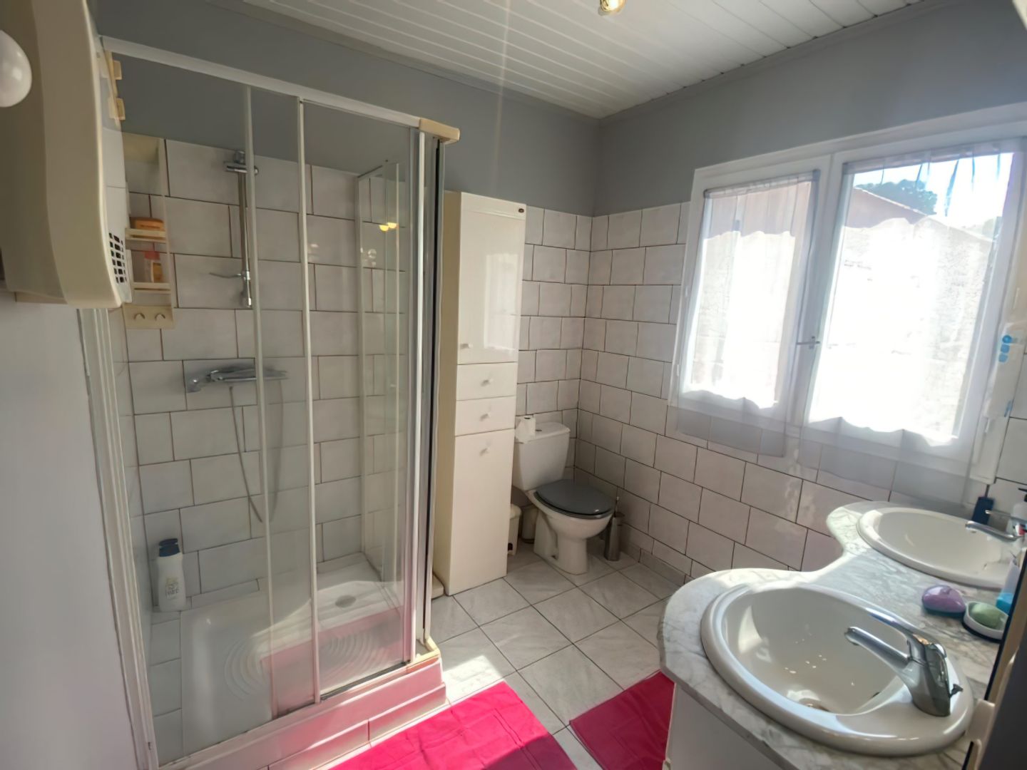 À l'étage, 2 chambres (dans la première un lit de 140x190 cm et dans la seconde 2 lits de 90x190 cm), une salle d'eau avec douche et une buanderie avec lave-linge.