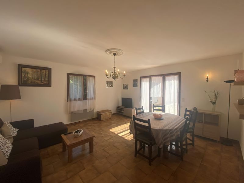 Au rez-de-chaussée, un séjour (TV, canapé convertible) donnant sur un petit jardin en copropriété, une cuisine (réfrigérateur, plaque à induction, four, micro-ondes, lave-vaisselle), un WC indépendant et une terrasse de 25 m².