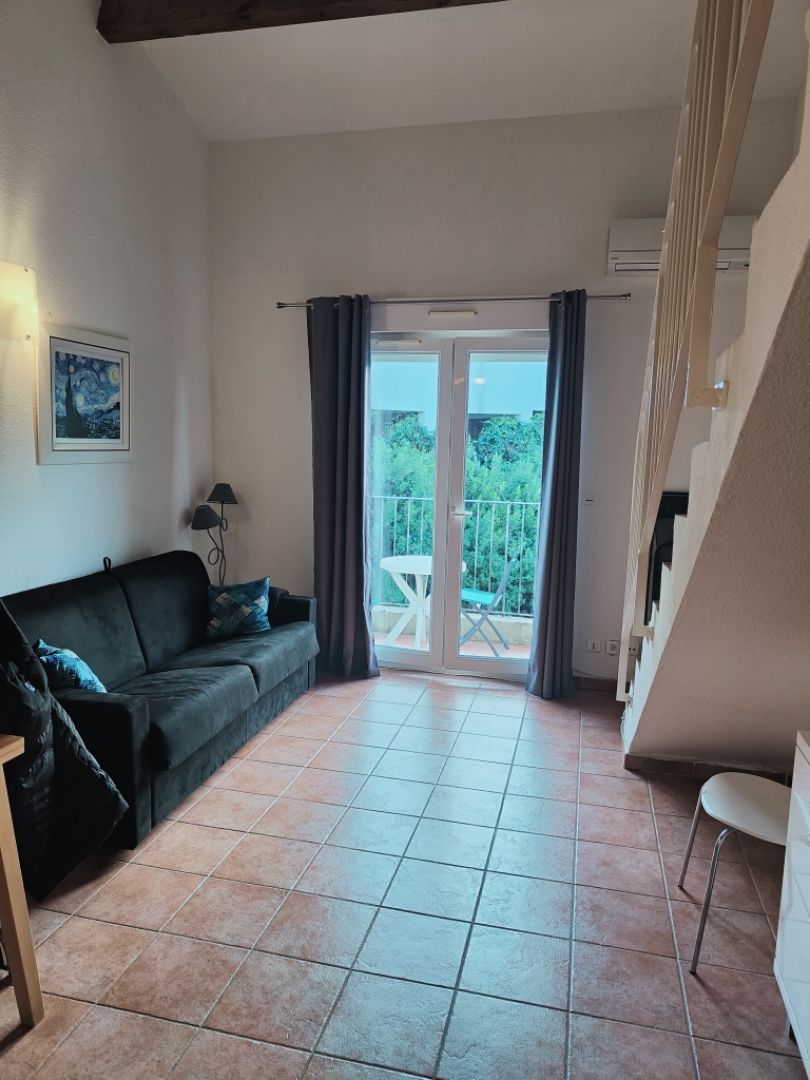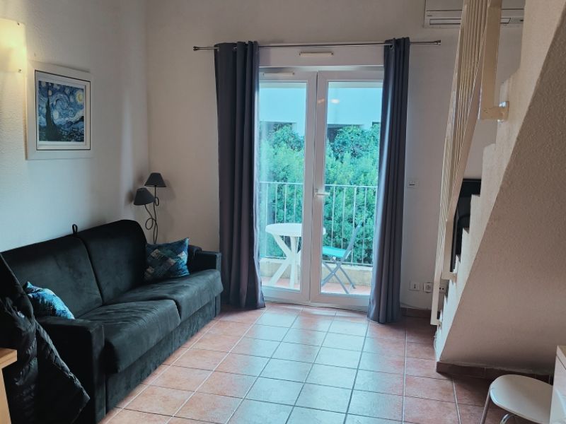 L'appartement se compose d'une cuisine ouverte sur le salon ouvrant sur un balcon, une salle d'eau avec wc, une chambre en mezzanine.