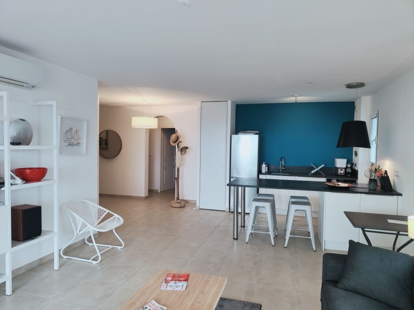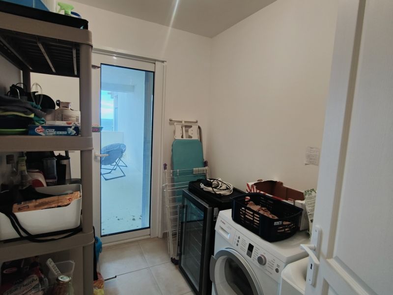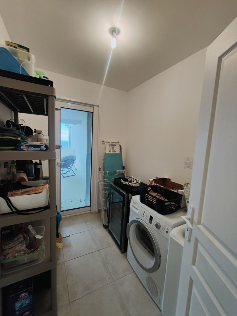 L'appartement lumineux et climatisé, se compose comme suit : un espace de vie lumineux avec cuisine équipée et séjour ouvrant sur une terrasse de m², un cellier spacieux, un espace nuit avec deux grandes chambres spacieuses offrant calme et rangements, une salle de bain avec douche à l'italienne et un wc indépendant.