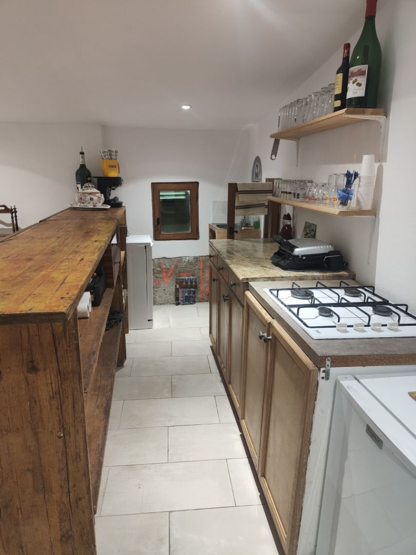 La maison se compose d'une pièce de vie avec coin cuiisne, une chambre donnant sur terrasse et une salle de bain avec wc.
