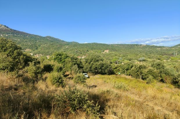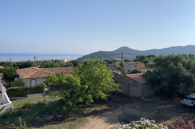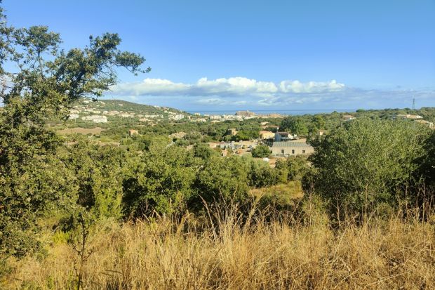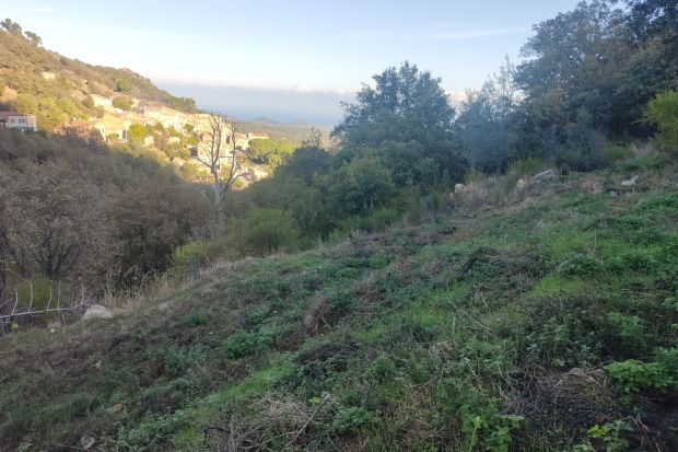 Terrain vue dégagée sur le village, la plaine, la mer et la montagne