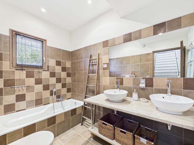 - en rez-de-chaussée : un hall d'entrée, un séjour donnant sur un patio de 14 m² avec barbecue, un espace cuisine/salon ouvrant sur terrasse de 40 m², une chambre parentale avec salle d'eau, dressing et balcon.